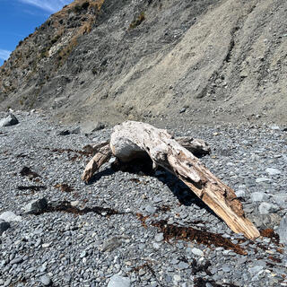 Grabbing some sea water for a wash, I find some fresh water, dine on a couple of OSMs, then settle in behind a length of driftwood.