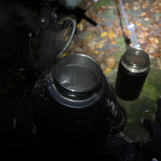 It's cold and I'm seriously hitting the wall. I retrieve a small jar of Fix & Fogg from the bowels of my frame bag. Masquerading as Nutella (I wish!) the crunchy peanut butter delivers a solid energy boost, without the side effects of sugar. Then I remove the 2L Camelbak thermos strapped to the bottom of my downtube and fill up the smaller HydroFlask thermos in my feedbag. The hot ginger lemon tea is a great morale booster, without the side effects of caffeine.