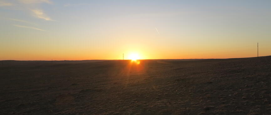 On the horizon, an abandoned building beckons and I detour across the steppe to check it out. Up close, its walls of mud mosaics glow in the late afternoon sun. But, upon checking out the interior, I’m disappointed to find the dirt floor littered with empty vodka bottles. I could certainly hide my tent in there, but I’m worried that my peaceful sleep would be gatecrashed by rowdy and possibly dangerous locals.